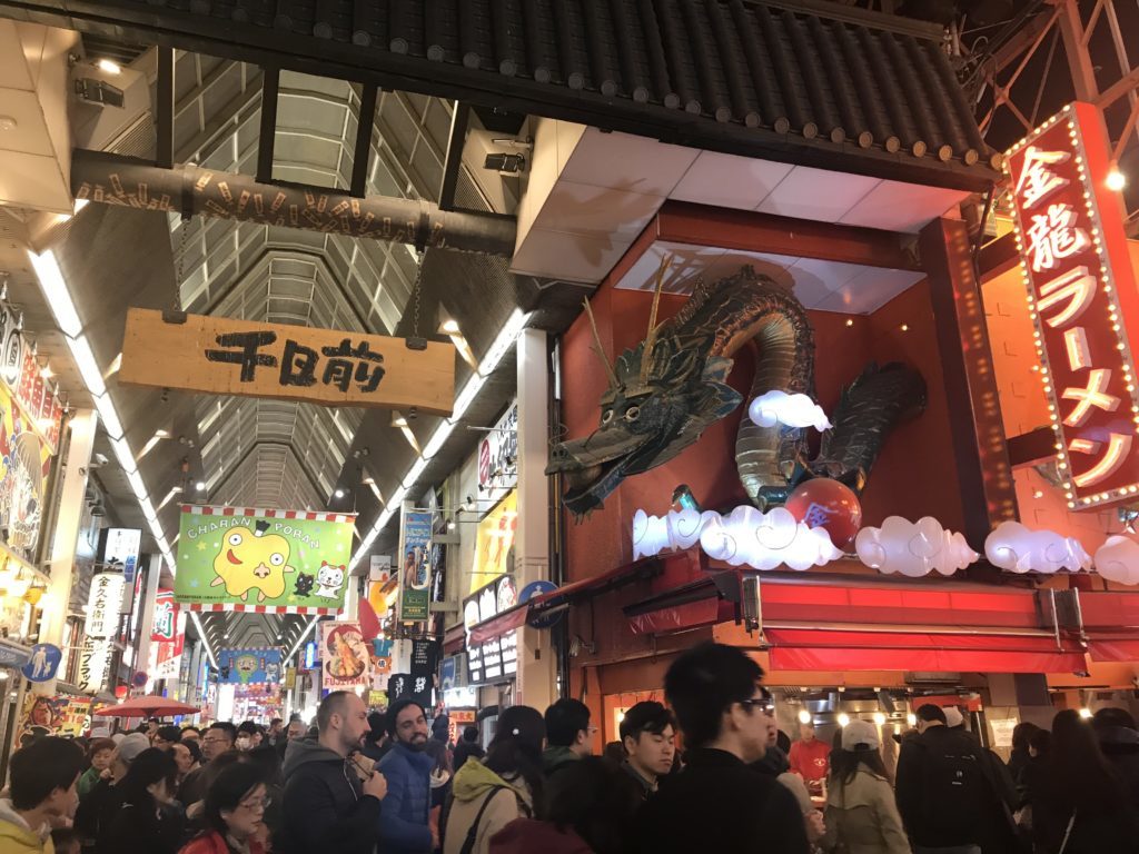 Přibližně 3 minuty od stanice metra Namba je oblast Dotonbori, kterou protíná stejnojmenná řeka. Pokud jste v Japonsku poprvé, tak Dotonbori je dobré místo, kde celou japonskou tour začít. Obrovské neonové nápisy, gigantické zářivé reklamy, množství ikonických restaurací. Tady si poprvé řeknete: “wow, takže to není Truman show a já jsem opravdu v Japonsku!” Pokud jste nikdy nebyli ve městech jako Hong Kong, Šanghaj ap., tak to bude první velký zážitek z Japonska.