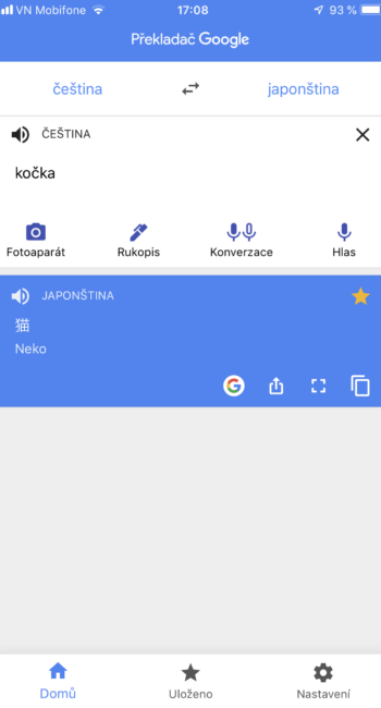 - Ta žlutá ikonka uprostřed vpravo se hodí, když si chcete překlad uložit. Ve spodním menu máte Uloženo, tam právě překlady takto označené najdete.